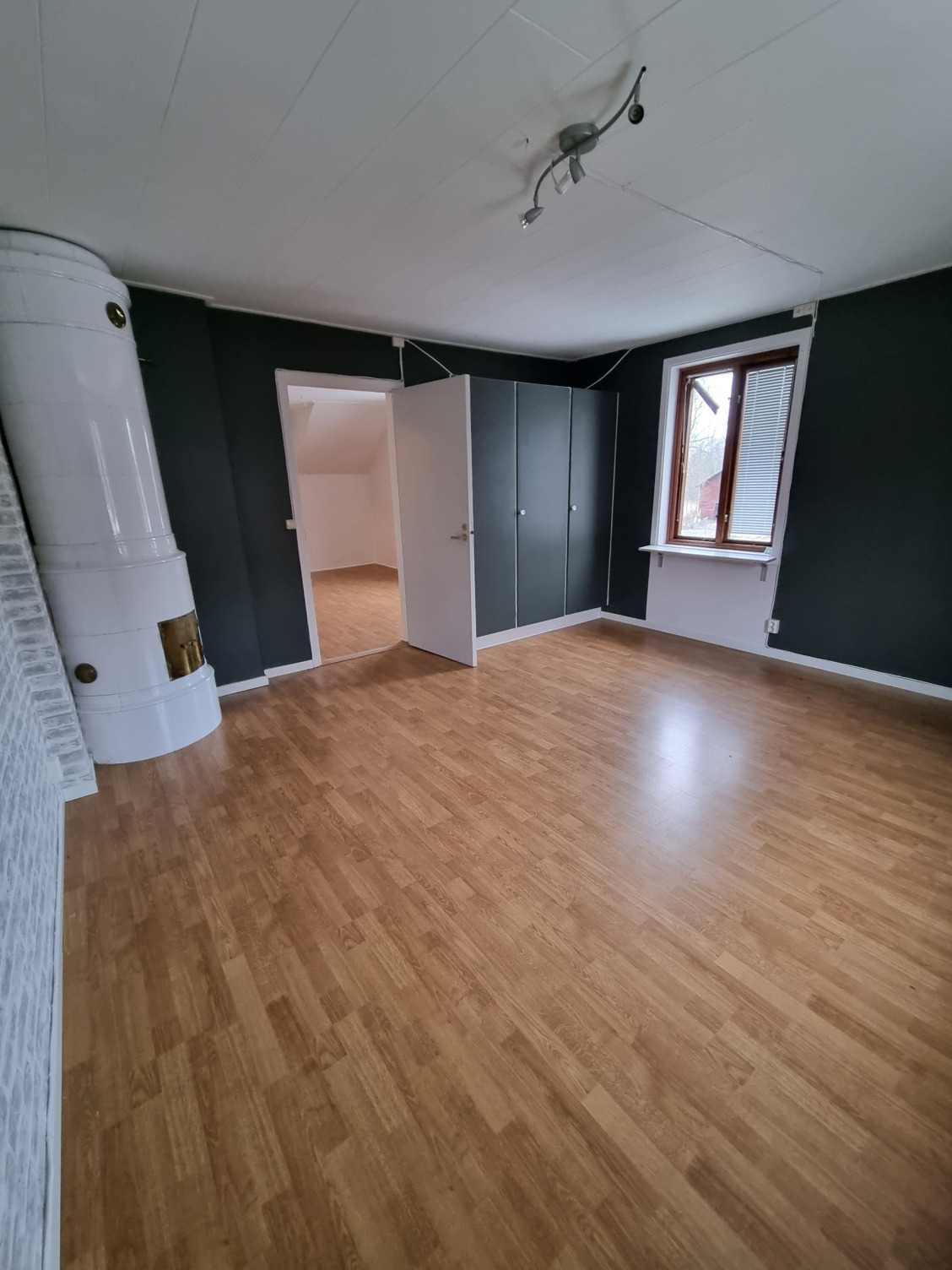 Denna stora 3:a har ett underbart lantkök och kakelugnar som extra detalj. Dessutom ett helkaklat badrum. Alla rummen är jämnstora, varför du själv kan välja vilket som skall vara vardagsrum/sovrum/arbetsrum.